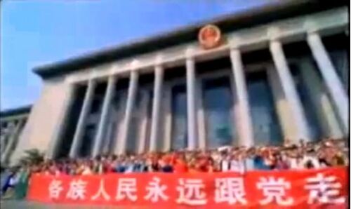 「永遠跟党走」とは「永遠に党と共に歩もう」という意味です。 この動画は出処が何処なのかはわからないのですが、あちらだとこういう感じの映像が、テレビでよく流れていたりします。 再生は以下から。