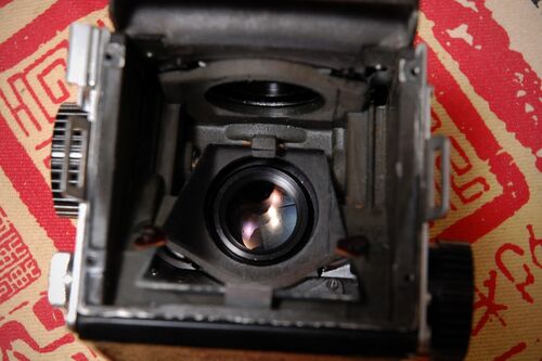 ▲第1回でも書きましたが、とにかく40年ぐらい前の古いカメラなので、アチコチ手を加えてやる必要があります。そこで、最もカンタンなファインダー清掃から始めて見ることにしまいた。 ▲フォーカシングスクリーンに取れないホコリや液体?のシミみたいなのが…