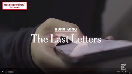 【視聴推奨】『HONG KONG The Last Letters』ニューヨーク・タイムズ制作のドキュメンタリー映像。「暴徒」と呼ばれる香港の若者たちが愛する人達へ宛てた「遺書」を紹介。「特攻隊員の遺書」に通じるものがあります。日本のメディアが取り上げない彼らの心…