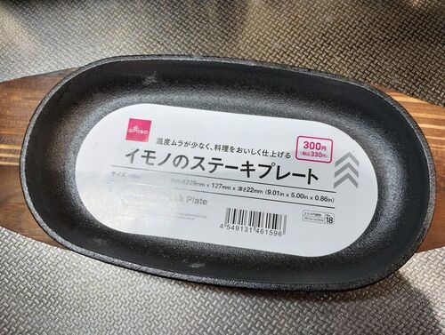 ▲ダイソーの「イモノのステーキプレート」 これって「アレ」に使えるんじゃないかな…と以前から気になっていたのですね(^^)