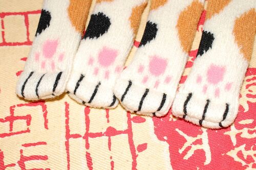 2回目の緊急事態宣言発令を目前に控えて、食べ物とか殺菌のウェットティッシュを買いだめしようと思い、街に出てきました。 ▲そこで見つけたのがこれ。「猫足型イス脚カバー」というもので、イスの足にはかせる靴下みたいなものです。 これからまた外出自粛…